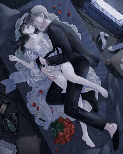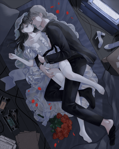 本当はもっとプリンセスなベッドにする予定が、朔の乱雑な部屋にいるほうがエロいことに気づいて方向転換した。朔の服が黒いから背景も暗くすると同化しないか?とか色々と考えて悩んでた。あと、床の木目の方向をベッドに対し並行にするか垂直にするかで悩んだ(この段階では垂直)。目線を誘導するように・・とかいうけど難しい。結果的に並行にしたけど正解を教えてほしい。