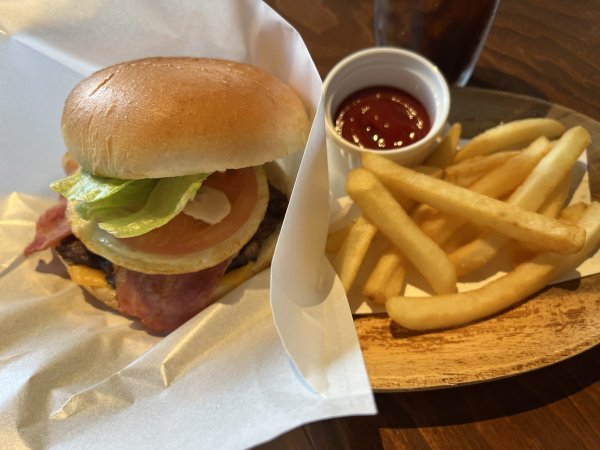 帰りに立ち寄ったバーのバーガー。うまい。長崎さいこぅ!